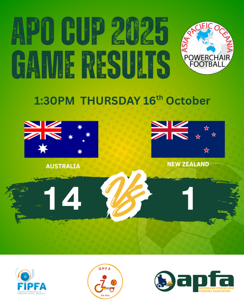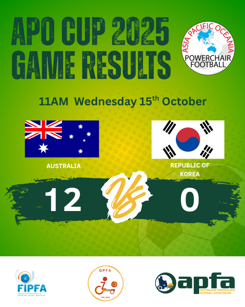 This result sees the Australian Poweroos qualify for the 2026 FIPFA Powerchair Football World Cup, set to be held next October in Argentina!