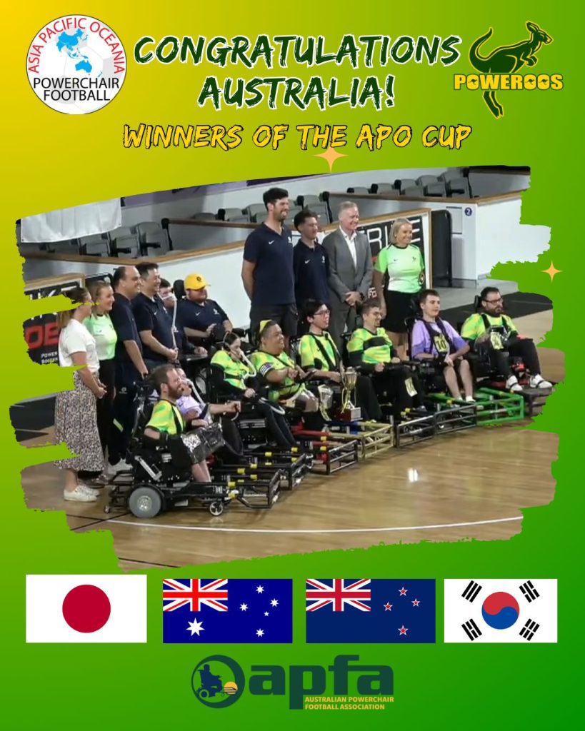 Australia’s national powerchair football team, the Australian Poweroos are currently ranked 6th in the world and are the APO (Asia Pacific Oceania) champions. Click below to learn more or donate!
